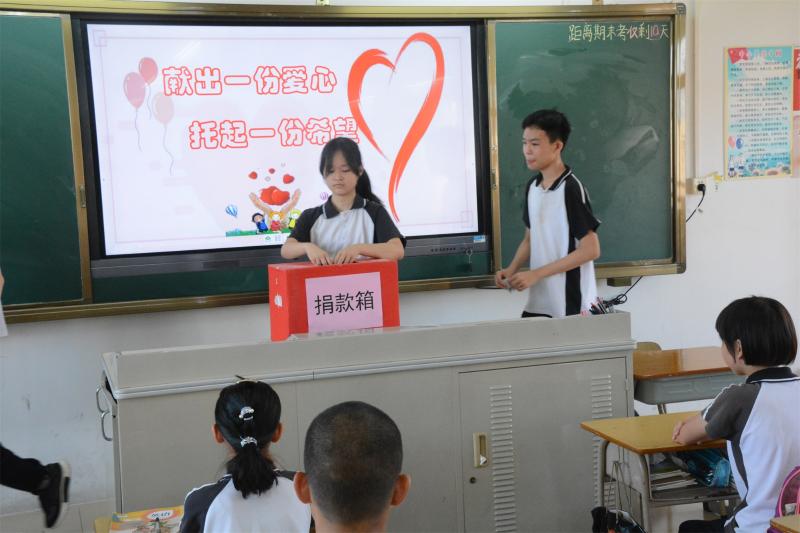 學(xué)生們有秩序地走向募捐箱,用雙手將早已準(zhǔn)備好的愛(ài)心款放入募捐箱,每一份帶著溫度的小愛(ài)心在一方小小的募捐箱里匯聚成一顆大愛(ài)心。