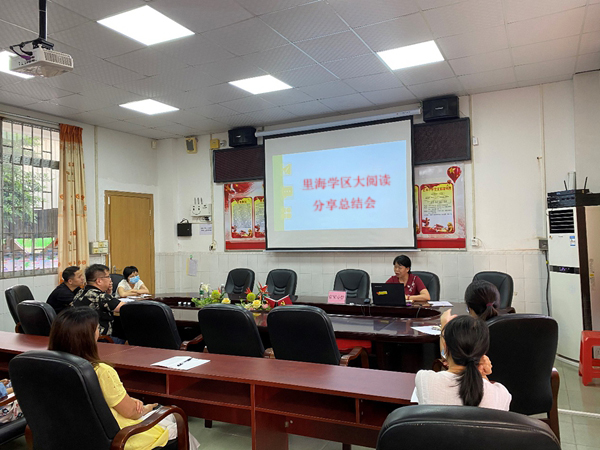 書是鑰匙,為我們開啟智慧之門;書是階梯,幫助我們登上理想的高峰;書是乳汁,哺育我們成長。7月10日,里海學(xué)區(qū)負(fù)責(zé)教學(xué)工作的全體成員齊聚在官田小學(xué)會(huì)議室,一起分享大閱讀工作的開展情況和總結(jié)本學(xué)年的閱讀成果??偨Y(jié)的主題是:閱讀、悅讀、思享、成長,大家圍繞主題進(jìn)行了總結(jié)交流,氣氛輕松又熱烈。