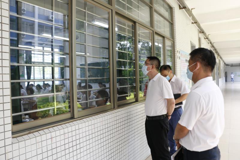 高建歡校長(zhǎng)熱情迎接龍書記一行人的到來。在高校長(zhǎng)的陪同下,龍書記一行到校園各處了解開學(xué)首日的情況,走到教學(xué)區(qū)時(shí)還認(rèn)真傾聽了師生的上課情況。