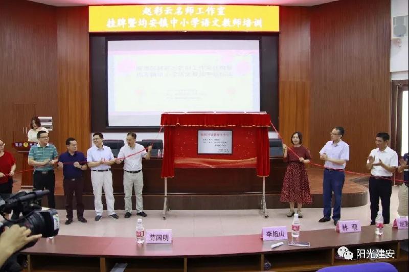 隨后,專家、領導與工作室主要成員等一起為工作室舉行了揭牌儀式,預示著均安鎮(zhèn)名師培養(yǎng)工作又站上了一個新的臺階。