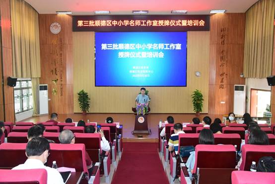 2020年6月30日,第三批順德區(qū)中小學(xué)名師工作室授牌儀式暨培訓(xùn)會(huì)在順德區(qū)華僑中學(xué)實(shí)驗(yàn)室一樓階梯室隆重舉行。廣東省中小學(xué)教師培訓(xùn)專家工作室主持人、肇慶學(xué)院副院長肖起清教授,區(qū)教育局冼彌冬副局長,區(qū)教育局組織人事科劉進(jìn)華科長、曾麗輝副科長,區(qū)教育發(fā)展中心何儀昌副書記,區(qū)教育發(fā)展中心教師發(fā)展研究室唐信焱主任、吳海堅(jiān)副主任,區(qū)教育局、區(qū)教育發(fā)展中心相關(guān)領(lǐng)導(dǎo)和老師,以及我區(qū)第三批名師工作室首席主持人、項(xiàng)目主持人近140人參加了本次會(huì)議。會(huì)議由劉進(jìn)華科長主持。