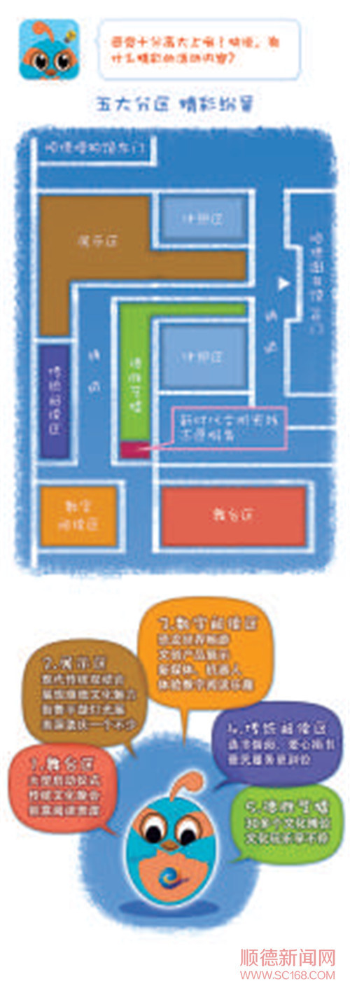 數(shù)字閱讀區(qū)劃分為傳統(tǒng)文化體驗區(qū)、恐龍世界暢游區(qū)、讀者現(xiàn)場活動區(qū)、順圖新媒體展示區(qū)、智能機器人展示區(qū)、順圖文創(chuàng)展區(qū)、順德區(qū)圖書館集群建設展區(qū)、學習強國展示區(qū)八個區(qū)域,為市民帶來不同類型的數(shù)字互動閱讀體驗。