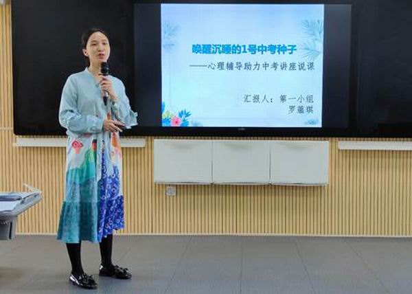 接著,三個備課組各派代表依次展開說課與模擬課堂活動。各組圍繞初三畢業(yè)生的實際心理狀態(tài)進行展示,目標明確,素材豐富。說課、模擬課堂的講師團代表們各具特色,展現(xiàn)出了良好的專業(yè)素養(yǎng)與出色的課堂駕馭能力。與會講師們常常被精彩片段吸引,甚至忍不住現(xiàn)場嘗試模仿心理保健操和心理小實驗等。