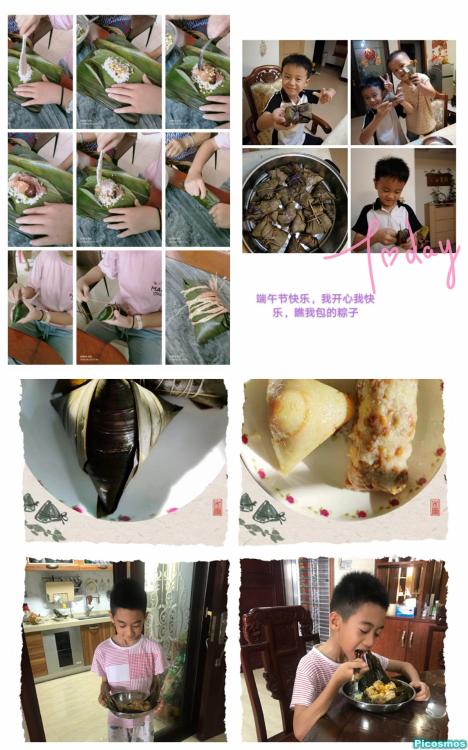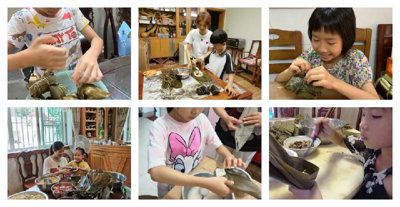當(dāng)這樣一個(gè)粽味飄香的傳統(tǒng)節(jié)日遇上一群童真童趣的學(xué)子會(huì)擦出怎樣的火花呢?學(xué)校倡議孩子們和家人一起動(dòng)手包粽子,孩子們躍躍欲試,回家后迫不及待向家長學(xué)包粽子的技巧和手法。折粽葉、裝糯米、放餡料、捆扎粽??????雖然沒有大人包得那么好看,但是get新技能的童心少年成就感十足,臉上洋溢著歡樂的笑容。通過親子包粽子的體驗(yàn),孩子們體會(huì)到了從做到吃的意義轉(zhuǎn)變,充分感受端午節(jié)的氣氛和儀式感,同時(shí)收獲了和家人在一起的親子時(shí)光。