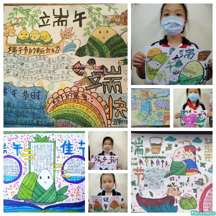 除了包粽子,制作端午小報(bào)也讓孩子們興趣盎然。孩子們收集資料,童心和熱情精心繪制,描繪出心中的端午節(jié)。你們看,一張航精致的端午小報(bào)脫穎而出。