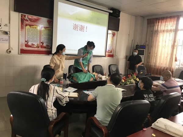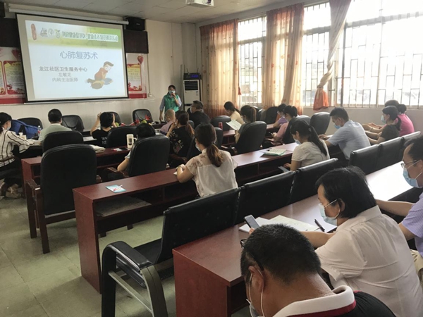 根據(jù)《佛山市順德區(qū)人民政府辦公室關(guān)于印發(fā)順德區(qū)健康村(社 區(qū))工作實施方案(2018-2020 年)的通知》和《2020 年順德區(qū)健康教育和健康素養(yǎng)促進項目工作方案》,為更好地推進健康細胞創(chuàng)建 工作,結(jié)合我鎮(zhèn)“全國億萬農(nóng)民健康促進行動”、“健康龍江”建設(shè),為在校園普及衛(wèi)生救護常識,培養(yǎng)教師的安全意識,提高自身保護能力。6月22日下午,龍江社區(qū)衛(wèi)生服務(wù)中心左敏芝醫(yī)生蒞臨我校,為全體教師進行了一場急救技能知識培訓(xùn)。