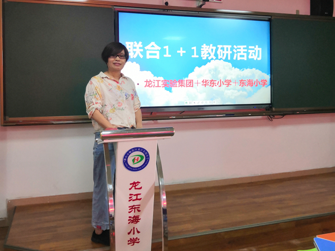 6月19日早上,龍江實驗集團華東小學與東海小學聯(lián)合1+1教研活動在東海小學階梯室舉行。