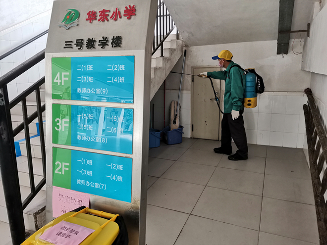 此外,學(xué)校還組織后勤人員每天進行晨掃、下午掃和消毒,加大校內(nèi)清掃力度,認(rèn)真落實清掃保潔制度,及時清掃辦公樓道、廁所,及時清理垃圾污物,保證環(huán)境衛(wèi)生整潔。還組織保安員不定期噴灑消毒液,防止“四害”傳媒疾病的發(fā)生和流行,確保師生身體健康。