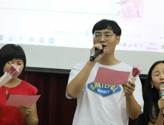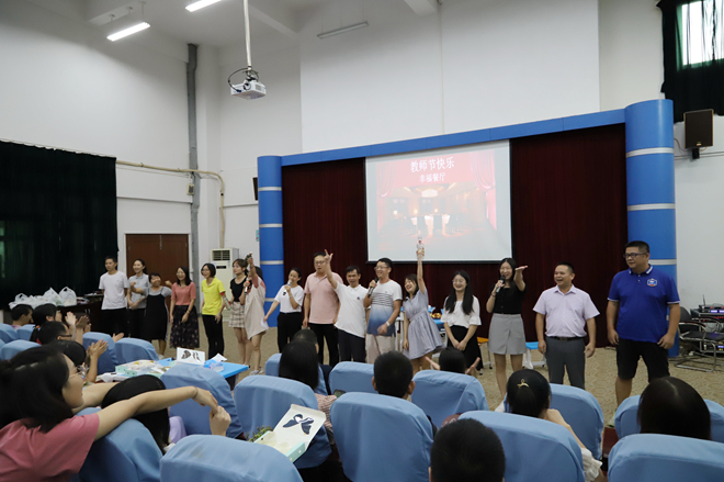 9月10日下午,全體教師聚集學(xué)校階梯式,進(jìn)行了短暫的慶祝教師節(jié)活動(dòng)。簡(jiǎn)單的下午茶,臨時(shí)排練的小節(jié)目,讓現(xiàn)場(chǎng)到處都洋溢著幸福、快樂(lè)的節(jié)日氣息!