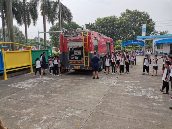 學(xué)生觀看消防車,了解消防知識(shí)