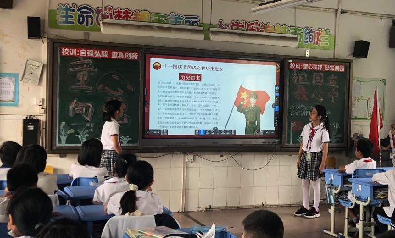 緊接著,各中隊(duì)組織開(kāi)展了“童心向黨,祖國(guó)在我心中”主題中隊(duì)活動(dòng),通過(guò)“向國(guó)旗敬禮”、“我為祖國(guó)媽媽唱首歌”、“學(xué)習(xí)新中國(guó)史”等形式多樣,內(nèi)涵豐富的活動(dòng),共慶祖國(guó)71華誕。在中隊(duì)活動(dòng)中,隊(duì)員們認(rèn)真了解新中國(guó)發(fā)展史、齊唱愛(ài)黨愛(ài)國(guó)紅歌,各小隊(duì)還以朗誦、演講、歌唱等多種形式來(lái)表白祖國(guó),歌頌祖國(guó),為祖國(guó)媽媽送上自己的一份生日祝福。