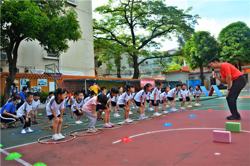 活動(dòng)第三站,學(xué)校劉志明老師帶領(lǐng)幼兒園小朋友們上了一節(jié)趣味盎然的體育課。帶領(lǐng)小朋友們做好充分地?zé)嵘頊?zhǔn)備后,劉老師根據(jù)龜兔賽跑的課程主題,學(xué)習(xí)了烏龜與兔子賽跑的姿勢(shì),融入了對(duì)應(yīng)角色,進(jìn)行賽跑活動(dòng)教學(xué)。幼兒園小朋友們各展所能,竭盡全力地奔赴終點(diǎn)。