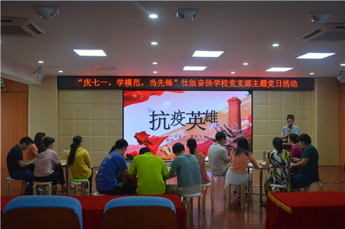 為慶祝中國共產(chǎn)黨成立99周年,引導(dǎo)廣大黨員教師重溫黨史、學(xué)習(xí)時(shí)代楷模精神、表揚(yáng)先進(jìn)、及時(shí)樹立先鋒模范,弘揚(yáng)黨的優(yōu)良傳統(tǒng),傳承紅色基因,踐行共產(chǎn)黨人的初心使命。2020年6月28日下午,仕版奮揚(yáng)學(xué)校黨支部開展”慶七一,學(xué)模范,當(dāng)先鋒“主題黨日活動(dòng)”。