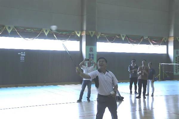老師們之間左迎右讓,進(jìn)退自如,球拍上下翻飛,打得虎虎生風(fēng),時不時一記重扣。老師們精彩的球技、默契的配合讓觀眾大飽眼福,激動不已。