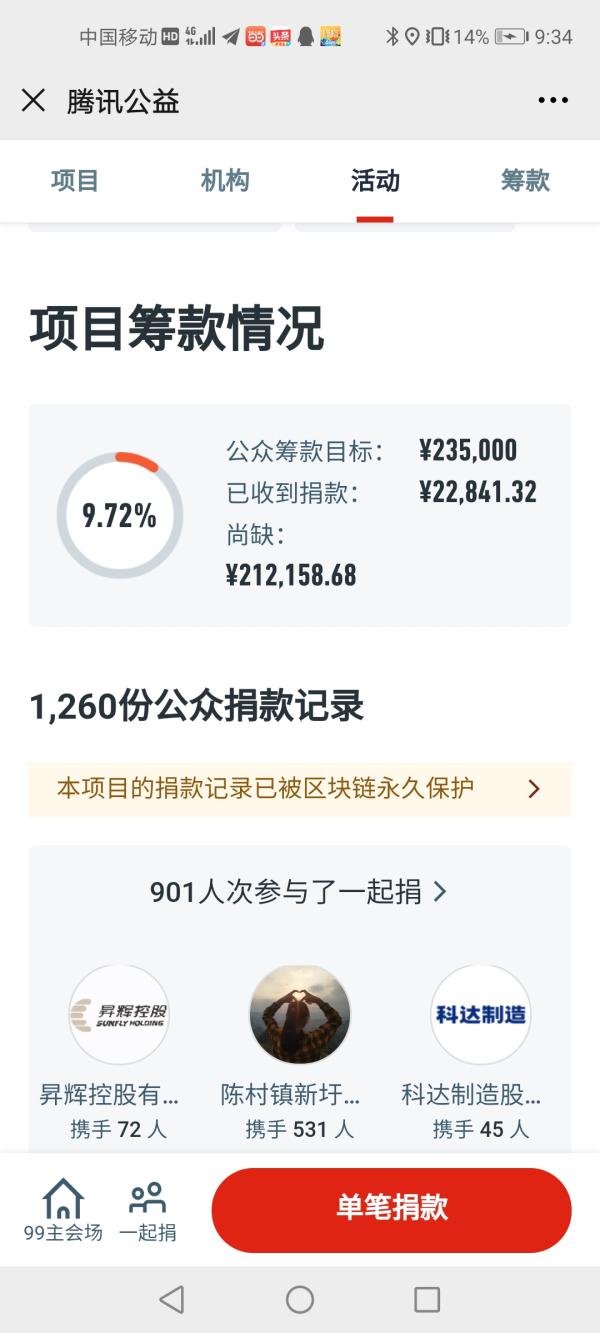 在大家的共同努力下,經(jīng)過三天的積累,最后不但達到預(yù)期目標,還超越了很多數(shù)字,共捐款數(shù)10811.12元,是全鎮(zhèn)慈善會收集的企業(yè)單位捐款總數(shù)(人民幣:22529.06元)的半壁江山,得到陳村慈善會的高度贊揚。這讓所有人都感覺到團結(jié)力量的偉大,和諧共贏的成功,愛心捐助的溫暖