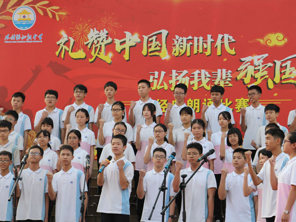2020年,是全面建成小康社會(huì)的決勝之年,是奪取新時(shí)代中國(guó)特色社會(huì)主義偉大勝利的關(guān)鍵之年,是中國(guó)現(xiàn)代化強(qiáng)國(guó)征途的啟航之年。為實(shí)現(xiàn)“立德樹人”教育目標(biāo),培養(yǎng)德智體美全面發(fā)展的新時(shí)代中國(guó)社會(huì)主義建設(shè)者和接班人,弘揚(yáng)學(xué)生的“愛國(guó)心,報(bào)國(guó)情,強(qiáng)國(guó)志”,豐富校園文化生活,打造書香校園。陳村鎮(zhèn)初級(jí)中學(xué)初二級(jí)于2020年11月5日下午,在學(xué)校操場(chǎng)舉辦了“禮贊中國(guó)新時(shí)代,弘揚(yáng)我輩強(qiáng)國(guó)志”的朗誦比賽。陳村鎮(zhèn)初級(jí)中學(xué)謝文忠校長(zhǎng)、專職書記梁兆倫副書記、李日和副校長(zhǎng)、汪立云副校長(zhǎng)、教務(wù)處楊麗桃主任、總務(wù)處林鵬副主任出席了本次比賽活動(dòng)。初二級(jí)全體語文老師擔(dān)任評(píng)委。