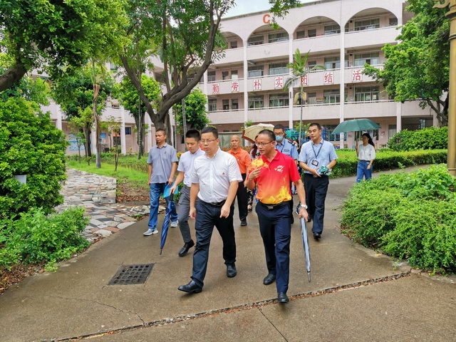 8月13日下午,勒流街道黨工委書(shū)記王光、宣傳文體局副局長(zhǎng)郭永添同志以及相關(guān)單位領(lǐng)導(dǎo),在教育局常務(wù)副局長(zhǎng)王家倫同志的陪同下蒞臨我校對(duì)創(chuàng)文工作進(jìn)行視察。