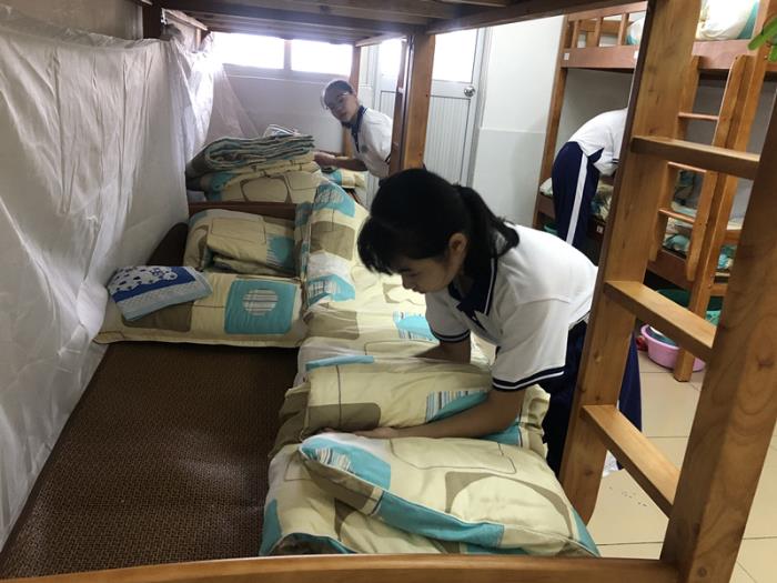 下午,同學們正式進行內(nèi)務培訓和隊列訓練。內(nèi)部培訓中,生活老師認真耐心地教新同學整理好內(nèi)務的方法和技巧。為了培訓達到更快更好的效果,各班男女生配備了內(nèi)務小老師幫忙。