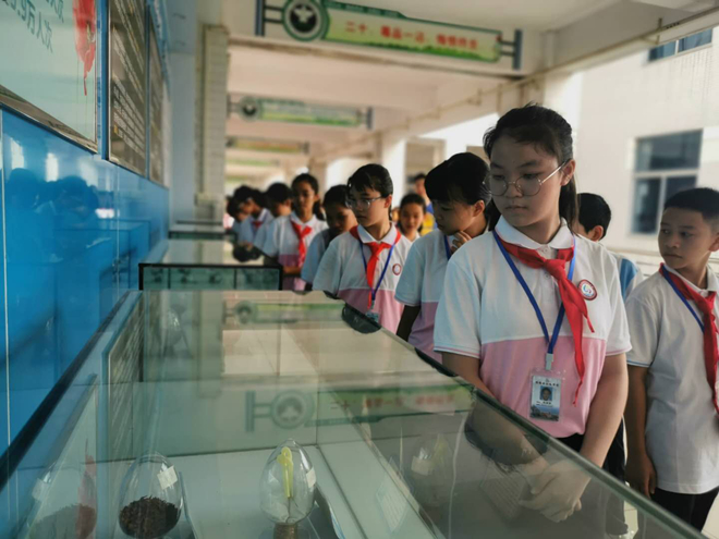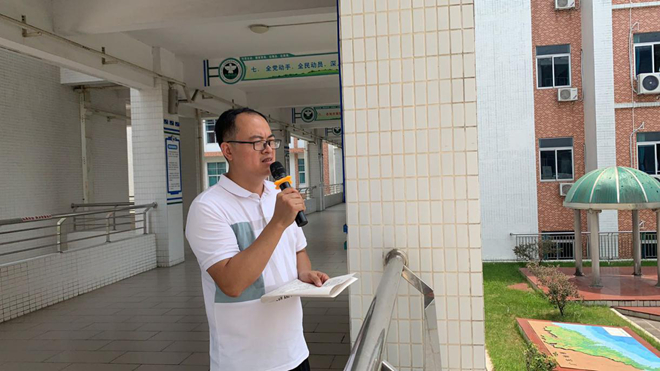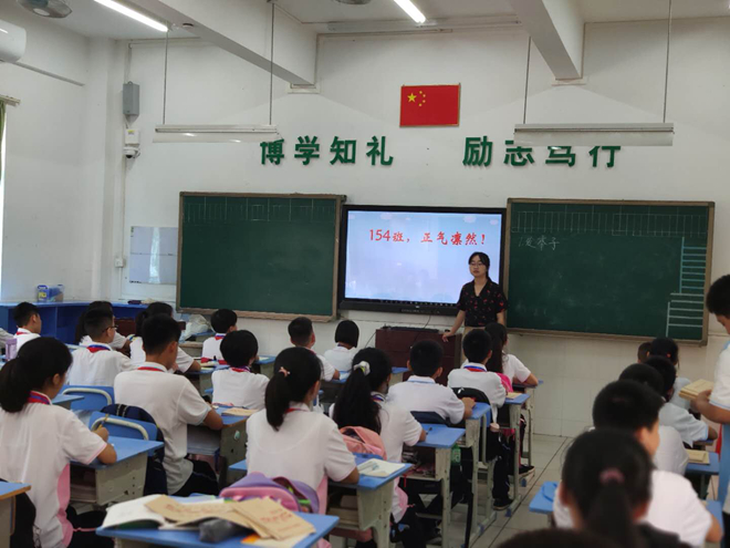 (初二的班長帶領(lǐng)各班“傳經(jīng)送寶”,參觀校園)