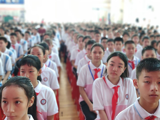同學(xué)們放好自行車,進(jìn)入教室,安靜坐好,等待著老師的到來。充滿愛心的班主任,帶著和藹的笑容進(jìn)入教室,親切地和同學(xué)們進(jìn)行交流。短暫的要求學(xué)習(xí)后,便去學(xué)校體育館進(jìn)行開學(xué)典禮。