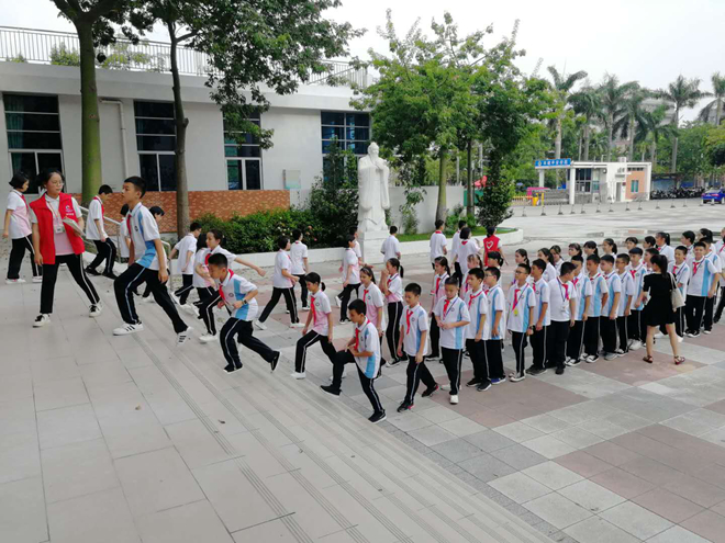 (老師統(tǒng)一全級(jí)進(jìn)行日常行為規(guī)范訓(xùn)練)