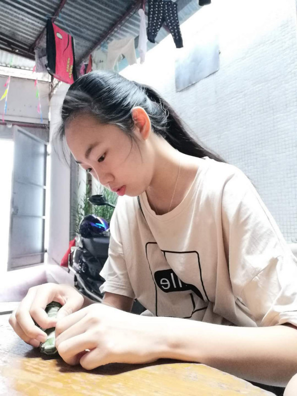 4.將粽葉包好后用準(zhǔn)備好的繩子把它綁緊。