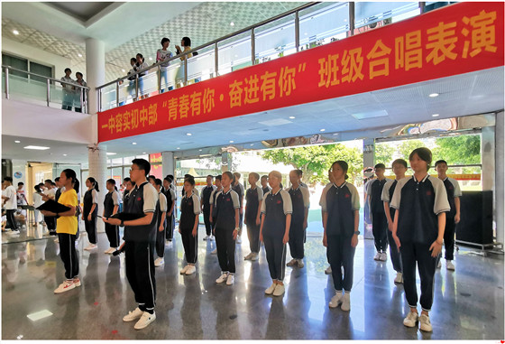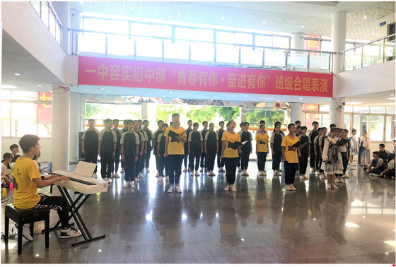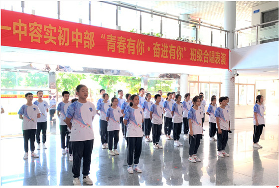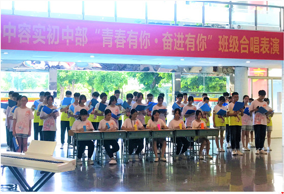 青春象征著勃發(fā)的生機(jī)與活力、無窮的激情與夢想,以及不懈的拼搏與進(jìn)取。6月21日,順德一中教育集團(tuán)容桂實驗學(xué)校七、八年級全體師生舉辦了一場以“青春有你?奮進(jìn)有你”為主題的班級合唱表演。