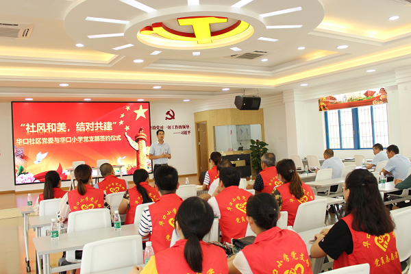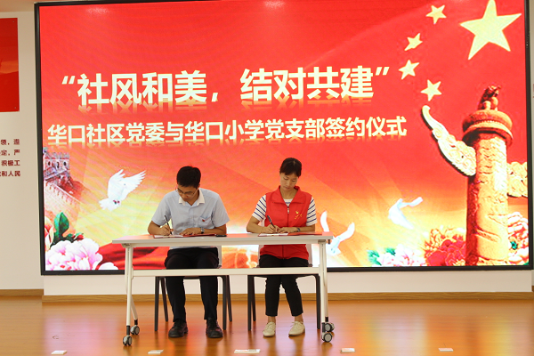 下午,在華口社區(qū)黨群服務中心,舉行華口社區(qū)黨委與華口小學黨支部的黨建結對儀式。華口社區(qū)書記黃活柏表示,希望通過通過結對共建,使雙方黨組織互相交流,互相學習,并且能夠形成合力共同做好社區(qū)服務的工作。