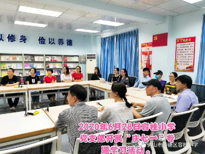 為慶祝中國(guó)共產(chǎn)黨建黨99周年,繼承和發(fā)揚(yáng)黨的優(yōu)良傳統(tǒng),充分發(fā)揮黨組織的戰(zhàn)斗堡壘作用和黨員的先鋒模范作用,2020年6月28日下午3時(shí),容桂小學(xué)黨支部組織全體黨員教師觀看了由中共佛山市委組織部、中共佛山市直屬機(jī)關(guān)工作委員會(huì)主辦的“戰(zhàn)‘疫’走在前,創(chuàng)模作表率”--2020年佛山市慶“七一”活動(dòng)。