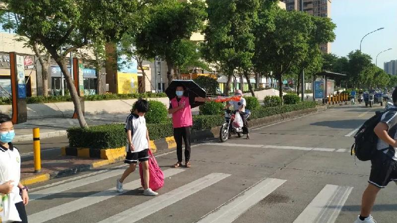 義工隊(duì)一百多人,每周五天的堅(jiān)守,架鐵馬、拉雪糕桶,站在斑馬線的兩端,站在車水馬龍之間,這不是一尊肉體,而是一座城墻。最難難在盲區(qū)拐角――不聽指揮的車輛強(qiáng)行將孩子放下;難在城光匯景的紅綠燈處――有車輛不顧綠燈強(qiáng)行通過。義工朋友義無反顧,交通管理紅旗一甩起,小小的身軀立出去。守衛(wèi)著容里小學(xué)全校師生的安全。