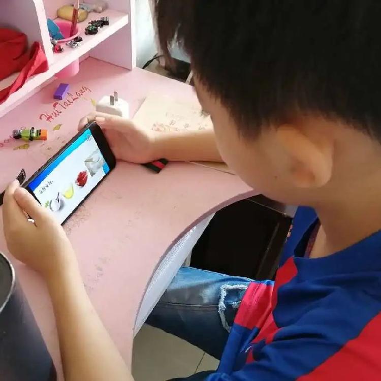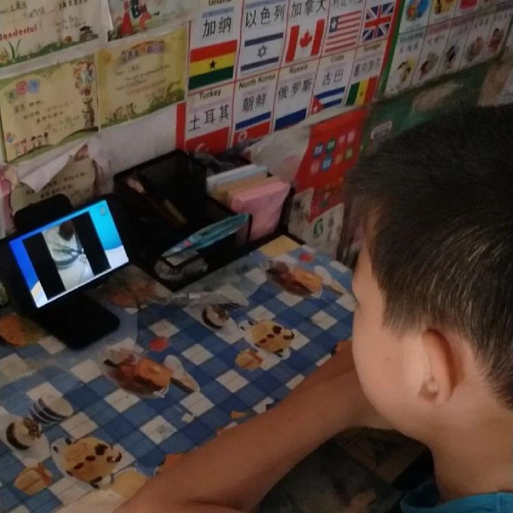 家長與孩子共同觀看由海尾小學(xué)老師