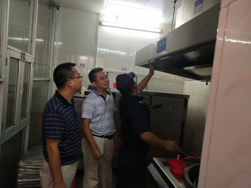 學(xué)校安全檢查小組對(duì)廚房現(xiàn)場(chǎng)進(jìn)行檢查