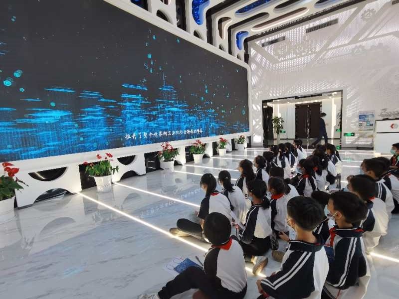 同學(xué)們觀看工業(yè)館簡介