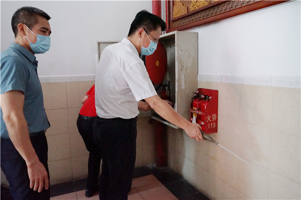 王勇副書記對消防設備進行檢查
