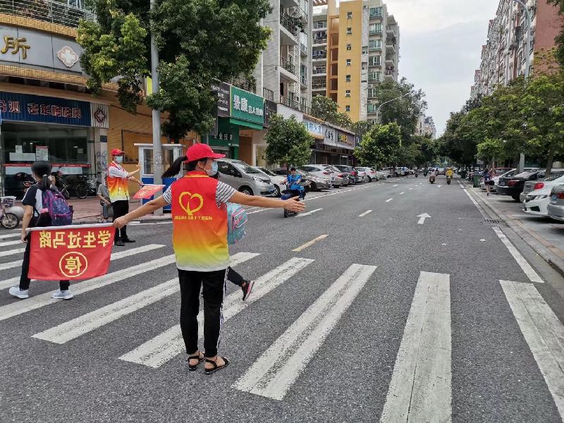 時值2017年9月,楊潤懿老師組織成立了學(xué)校的服務(wù)隊,他是我的班主任和語文老師,在他的“鼓動”下,媽媽就加入了服務(wù)隊?,F(xiàn)在我已經(jīng)讀初中了,當(dāng)媽媽知道容桂小學(xué)成立志愿者服務(wù)隊時,又成為了服務(wù)隊的一員。