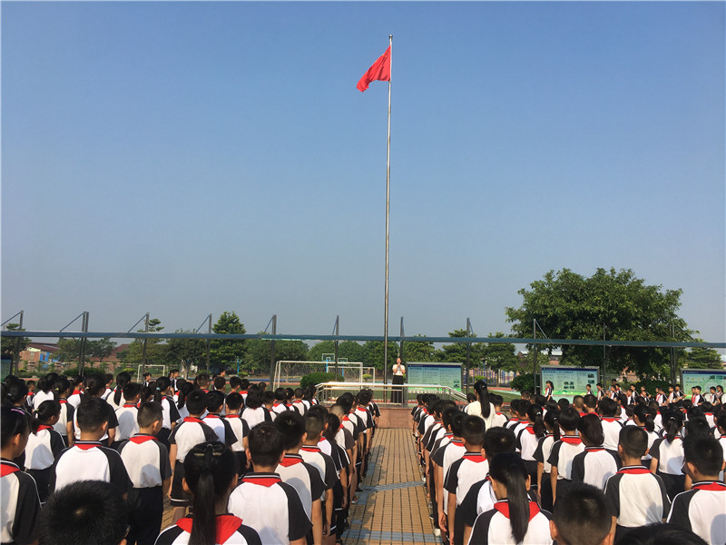 由于場(chǎng)地范圍有限,但是同學(xué)們參加典禮的熱情無(wú)限。只見(jiàn)同學(xué)們一個(gè)個(gè)揚(yáng)著笑臉,有序地到指定地點(diǎn)站好,靜待典禮開(kāi)始,整個(gè)會(huì)場(chǎng)寂靜安然,秩序良好。典禮由麥國(guó)才主任主持,首先是升旗儀式,五星紅旗冉冉升起,整齊的隊(duì)禮,莊嚴(yán)的儀式,傳達(dá)出全體師生對(duì)祖國(guó)的尊重與熱愛(ài)!典禮在莊嚴(yán)的國(guó)歌聲中拉開(kāi)了序幕。