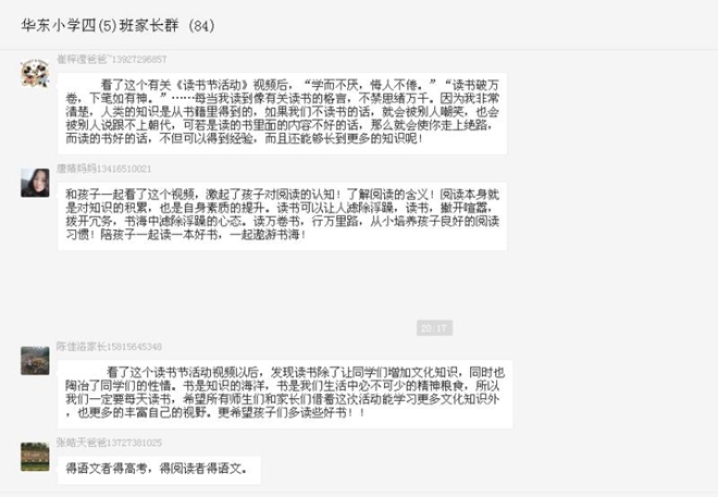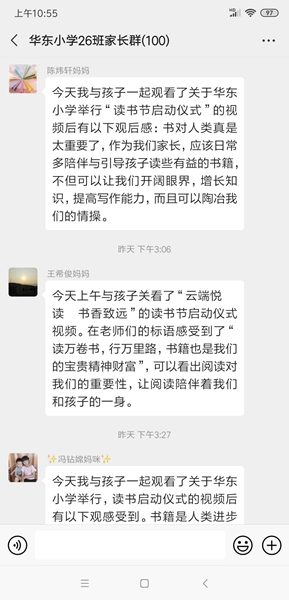 各班家長(zhǎng)們也在線上進(jìn)行讀書節(jié)互動(dòng)