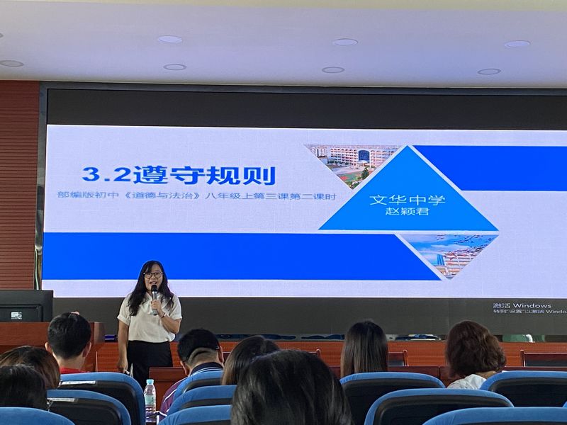 旨在提升道德與法治青年教師的專業(yè)能力,建構道德與法治教師教學展示交流平臺,形成良好的教研氛圍,有效引領道德與法治教師的專業(yè)發(fā)展,為提升初中道德與法治教學質量,9月22日,順德區(qū)容桂街道道德與法治教研組在容里中學舉辦了初中道德與法治學科青年教師教學能力大賽及時政開講大賽。我校優(yōu)秀青年教師趙穎君老師積極參與了此次比賽,并獲得特等獎(街道第一名)。