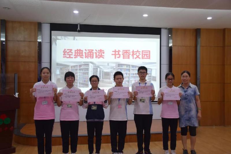 (圖|經(jīng)典誦讀活動(dòng)參賽獲獎(jiǎng)學(xué)生和郭轉(zhuǎn)顏級(jí)長(zhǎng)合影)