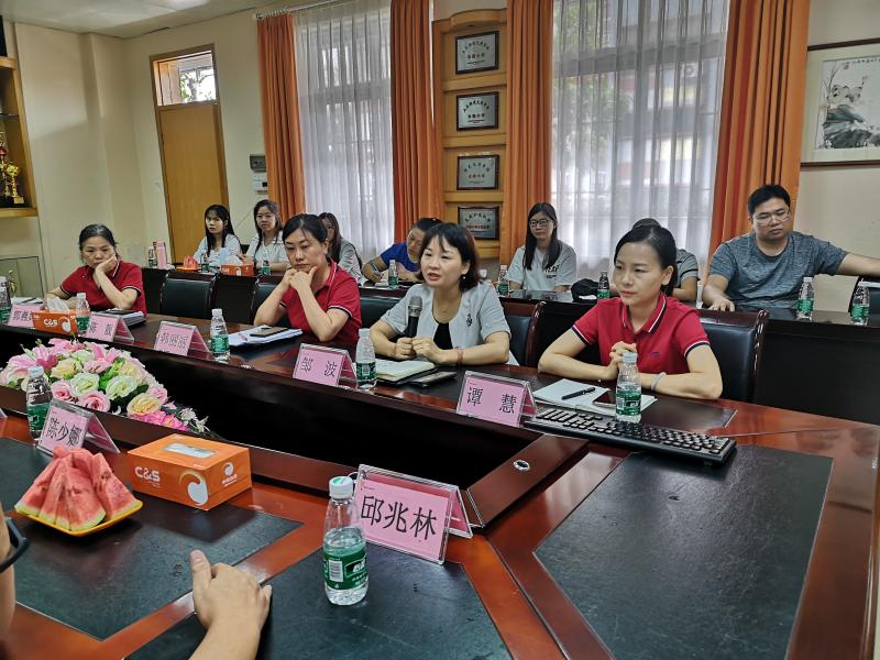 首先,我校領(lǐng)導(dǎo)班子和訪問(wèn)團(tuán)在會(huì)議室進(jìn)行了辦學(xué)經(jīng)驗(yàn)交流分享。分享會(huì)首先由我校譚慧副書(shū)記對(duì)我校的教育教學(xué)和辦學(xué)特色進(jìn)行了詳細(xì)而全面的經(jīng)驗(yàn)分享,如:一、“五育”并舉提素養(yǎng):如何從德育、智育、體育、美育和勞育五大舉措中,加強(qiáng)提升學(xué)生的綜合素養(yǎng)?二、“實(shí)”教學(xué)見(jiàn)成效:如何進(jìn)行學(xué)科管理,夯實(shí)學(xué)科基礎(chǔ),有效提高教學(xué)質(zhì)量?“科創(chuàng)”服務(wù)教學(xué):如何進(jìn)行綜合科組的團(tuán)隊(duì)建設(shè),并讓科技創(chuàng)新為學(xué)校教學(xué)服務(wù)?