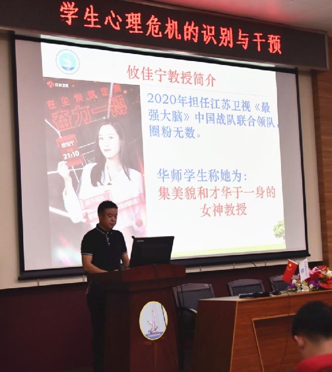 隨后,攸教授從“如何識別”和“如何應對”兩方面著手,澄清了外界對自殺的謬誤,細致地講述預防自殺事件的具體做法。其中,攸教授特別指出自殺是學生求救的重要訊號,教師應認真對待所有的自殺訊息,及早識別自殺的征兆;班主任和科任老師在識別自殺征兆環(huán)節(jié)中有著明顯的優(yōu)勢,教師應與家長成為同盟軍,發(fā)揮各班心理委員的作用。