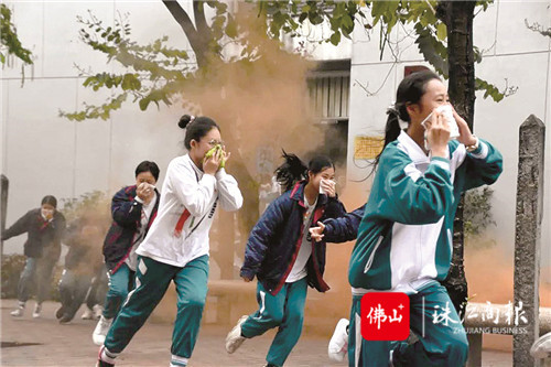 省實(shí)順德學(xué)校防震防火安全應(yīng)急疏散演練現(xiàn)場。/學(xué)校供圖