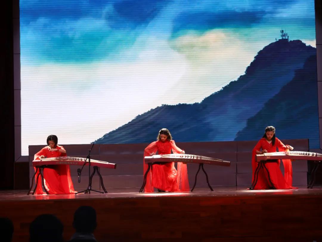 第二篇章是相知相愛(ài)一家親。古箏彈唱是我校的特色,趙穎蕊、黃婷、鄒鈺琪同學(xué)用細(xì)細(xì)的琴弦演繹廣東人民戰(zhàn)臺(tái)風(fēng)的故事,表現(xiàn)人民與自然作斗爭(zhēng)的不屈風(fēng)貌。