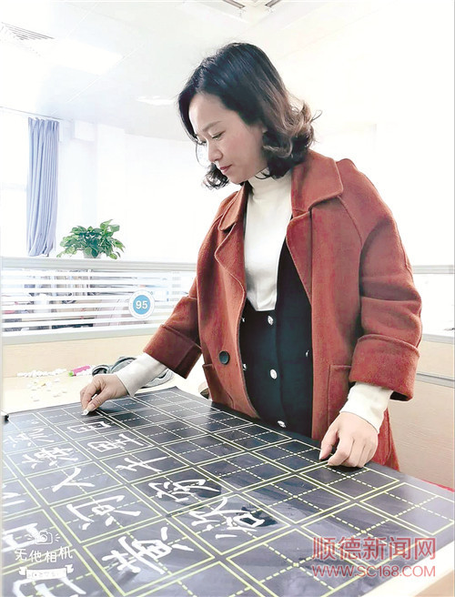 北滘鎮(zhèn)中心小學(xué)教師在認(rèn)真練習(xí)粉筆書法。/學(xué)校供圖