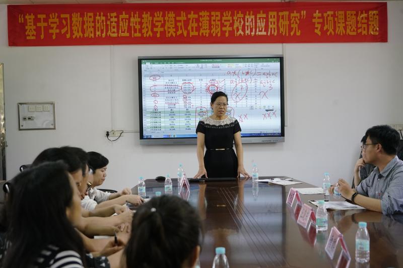 聽(tīng)課結(jié)束后,全體專家、學(xué)校教研室成員及科組長(zhǎng)、備課組長(zhǎng)集中會(huì)議2室共同觀摩了初二數(shù)學(xué)備課組基于數(shù)據(jù)的課堂教學(xué)研討活動(dòng)。在潘楚云組長(zhǎng)的帶領(lǐng)下,初二數(shù)學(xué)備課組針對(duì)課前、課中、課后數(shù)據(jù)所呈現(xiàn)的問(wèn)題進(jìn)行積極討論,老師們積極發(fā)言,教研氛圍濃厚,取得了良好的效果。