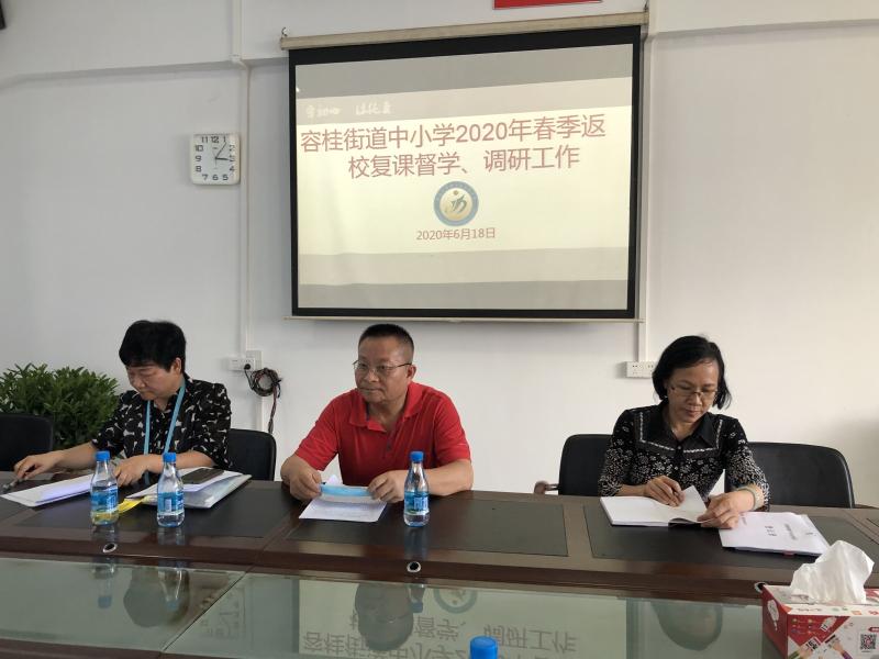四基中學周家飛副校長代表學校作主題為“強化舉措,守護返校復課”2020年春季學期中小學返校復課工作匯報,匯報主要圍繞疫情防控、閉環(huán)管理、教學銜接、心理預防、安全管理等方面工作向檢查組作了詳實的匯報。在報告中,周校長提到我校在學生返校復課后強抓安全管理的同時重視教學質量的提升。胥執(zhí)純股長等一行人聽完學校匯報后,給予了高度評價,肯定了四基中學的工作做得細,抓得實,抓得到位,抓出成效!并提出了兩點寶貴的建議:1、防疫工作堅定不放松;2、期末備考工作定位要準確,工作要扎實。抓住機遇,大有可為!
