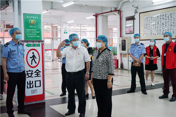在校園路上,劉國興副區(qū)長十分關(guān)心考點的情況及存在的困難。主考區(qū)淑玲向劉國興副區(qū)長詳細匯報考點的準備情況,亦提出學(xué)校周邊存在交通擁堵和施工噪音等問題。在現(xiàn)場,劉國興副區(qū)長馬上要求公安交警部門要出動足夠人力、物力,加強協(xié)調(diào),做好學(xué)校及周邊的安全保衛(wèi)和交通疏導(dǎo)工作,同時,要求街道國土城建部門在考試期間要停止學(xué)校周邊工地的施工作業(yè)。劉國興副區(qū)長強調(diào),考試前后,學(xué)生接送要加強管控,注意學(xué)生人身安全及道路交通安全。其次,要加強師生身體狀況的監(jiān)控,嚴防疫情的輸入及擴散,保障考生的安全。最后,劉國興副區(qū)長還特別提醒,學(xué)校要關(guān)注學(xué)生的思想情緒和心理健康問題,注意調(diào)適考試壓力,調(diào)整心態(tài),讓學(xué)生輕松應(yīng)對考試。
