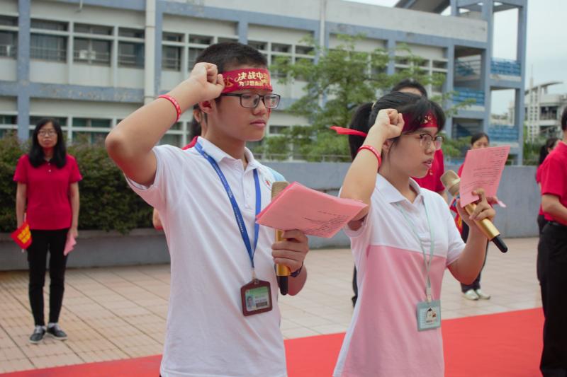 繼而,初三(10)班余芷琪、初三(6)班肖田田同學(xué)帶領(lǐng)全體同學(xué)進(jìn)行宣誓。