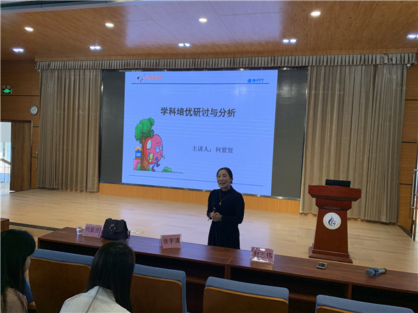 首先,本次教研活動(dòng)邀請了陳村鎮(zhèn)首屆名師和名師工作室主持人何紫賢主任作了《學(xué)科培優(yōu)的研討與分析》的專題講座。何主任強(qiáng)調(diào)培優(yōu)工作應(yīng)該注重知識(shí)點(diǎn)系統(tǒng)化、概念形象化、方式精細(xì)化、探討深入化。她還通過真實(shí)案例啟發(fā)老師們在課堂上學(xué)會(huì)運(yùn)用知識(shí)融會(huì)貫通的技巧,激發(fā)尖優(yōu)生的學(xué)科思維,提高學(xué)生的學(xué)科素養(yǎng)。